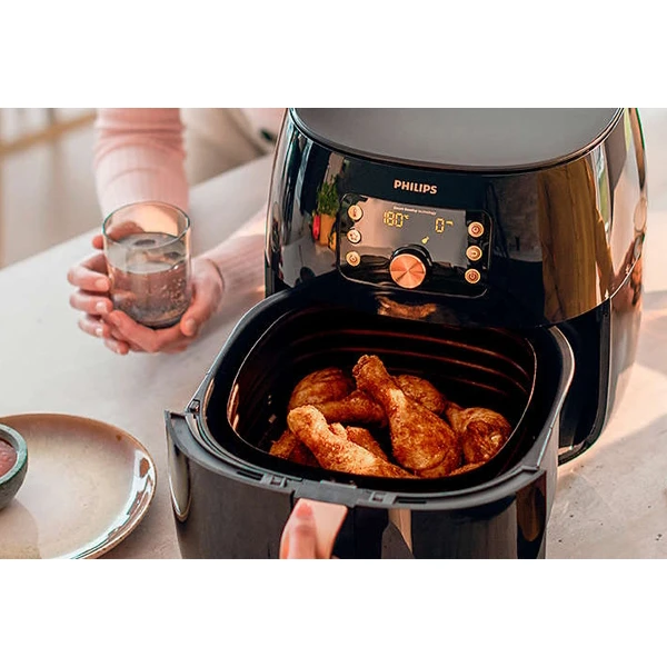 از سوی دیگر، سیستم پخت بدون روغن این سرخ کن که بر اساس تکنولوژی گرم کردن هوا طراحی شده است، امکان آمادهسازی انواع غذاهای سرخ شده از جمله سیبزمینی، مرغ و ماهی را با حفظ طعم و مزهی اصلی آنها فراهم میسازد. به این ترتیب، میتوان با استفاده از این محصول غذاهای سالمتر و کمچرب را در خانه تهیه کرد.